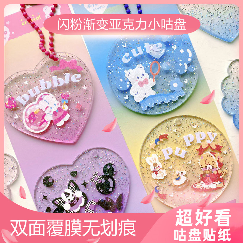 Diyカード小円盤閃粉グラデーションアクリルキーホルダー手帳カード