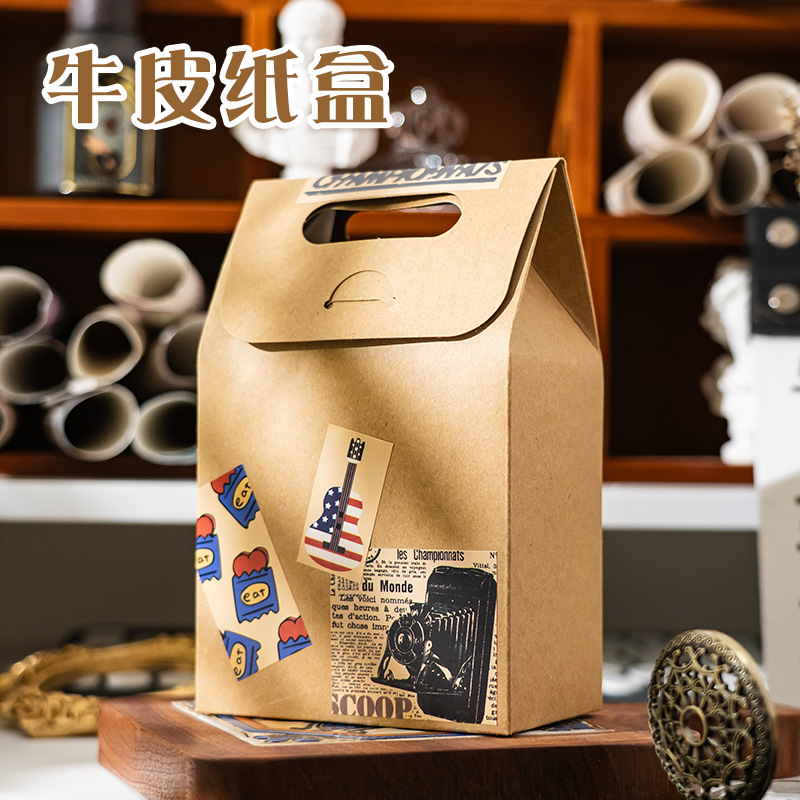 手提げクラフト紙箱厚手梱包キャンディギフトバッグシンプル包装箱クリエイティブdiyシールギフトバッグ