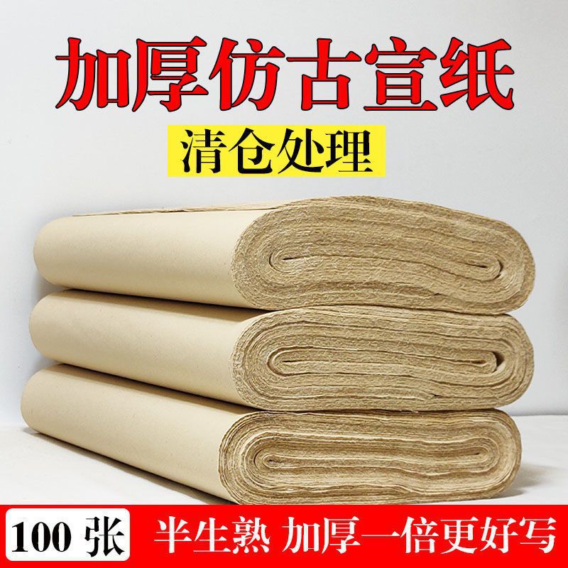 厚さ四尺宣紙半生半熟毛筆字書道作品紙生宣国画模造古色宣紙毛辺紙