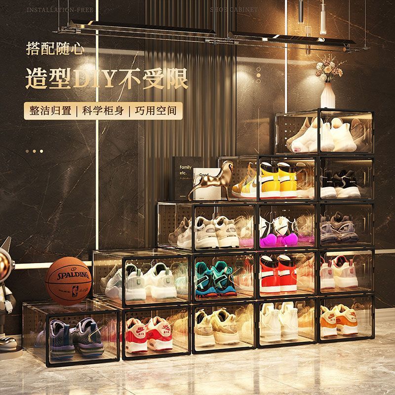 透明な靴の箱の多層の厚い収納の箱の空間の神器の靴の寮のプラスチックの靴の棚の下駄箱