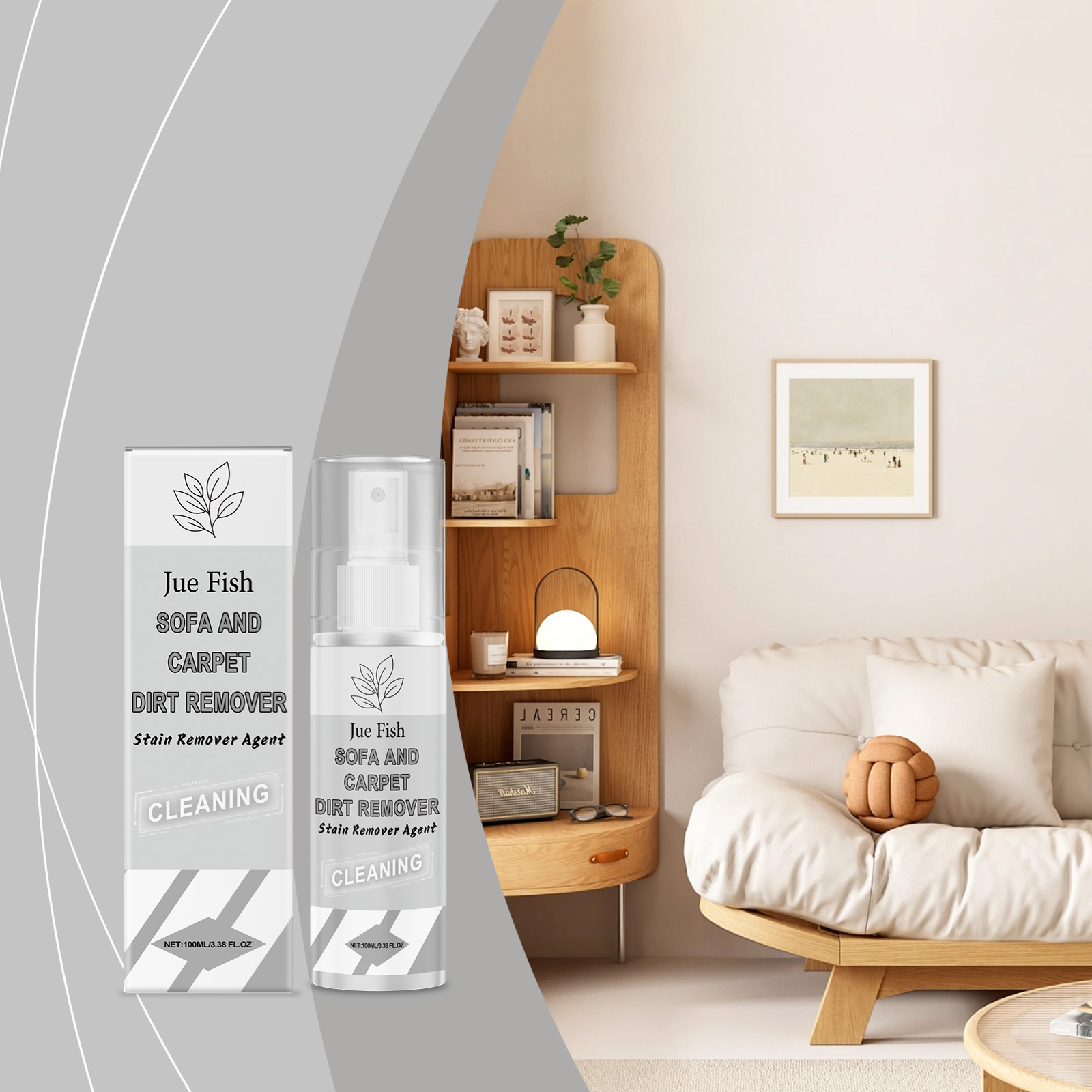 JUE FISH 家庭用汚れクリーナー カーペット ソファ 革表面除染スプレー マルチ効果のマイルドケア