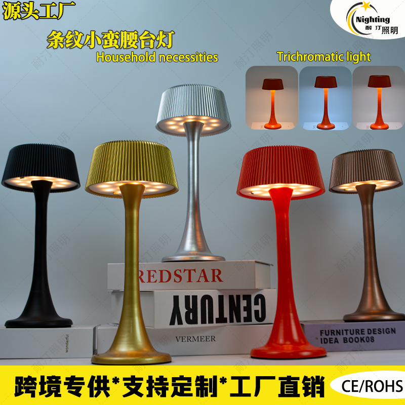 ストライプの小さい腰の電気スタンドのクロスボーダーの電気商の装飾の充電電気スタンドの金属の質感の雰囲気のランプのアイデアの小さい夜の明かり