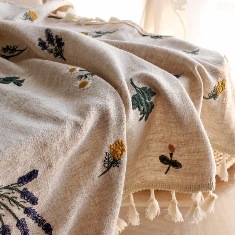 卸売刺繍わびさびスタイルテーブルクロス和風ライト高級長方形コーヒーテーブルクロス牧歌的なリネンクリームスタイルデスクカバー