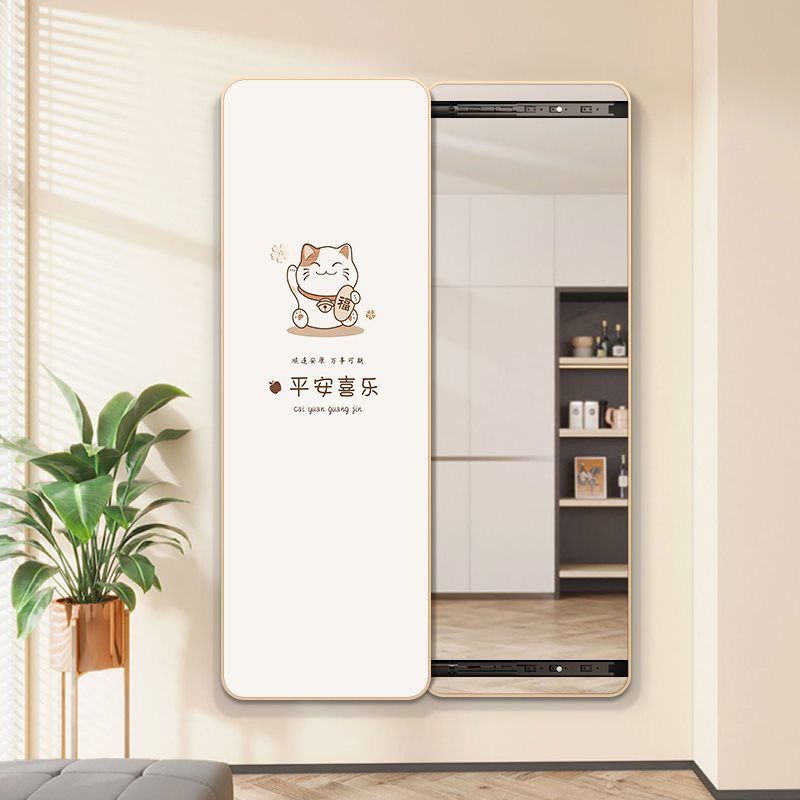卸売クリームスタイルの隠し全身鏡、角丸で目に見えない引き戸ドレッシングミラー、隠しクローズドミラー付き