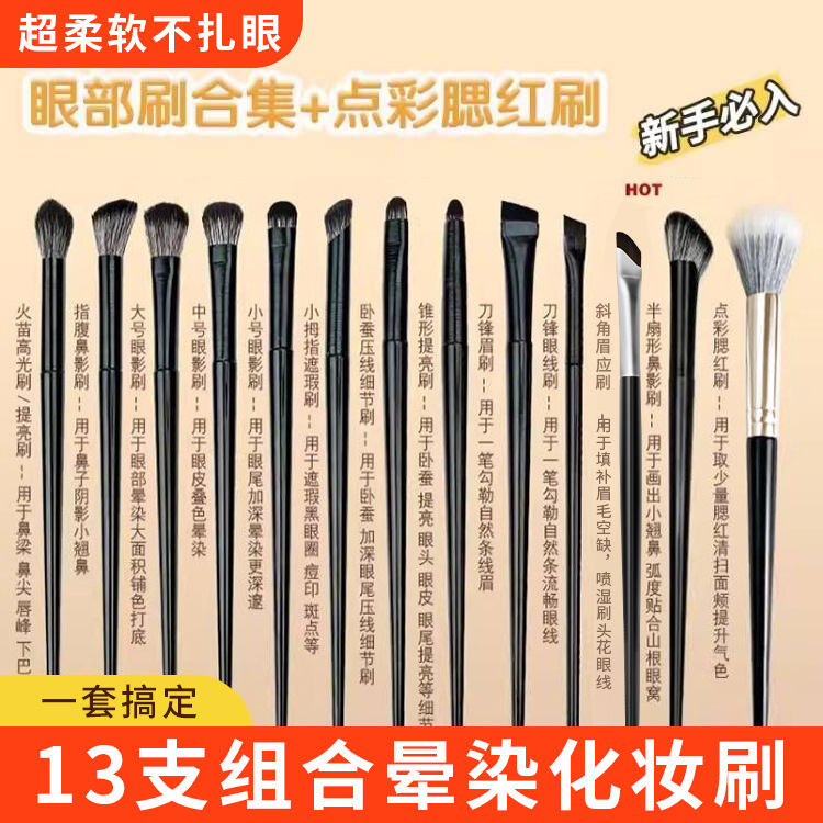 13本の黒糸目元ブラシ化粧道具アイメイクブラシバッグ携帯セット化粧ブラシ卸売り代理