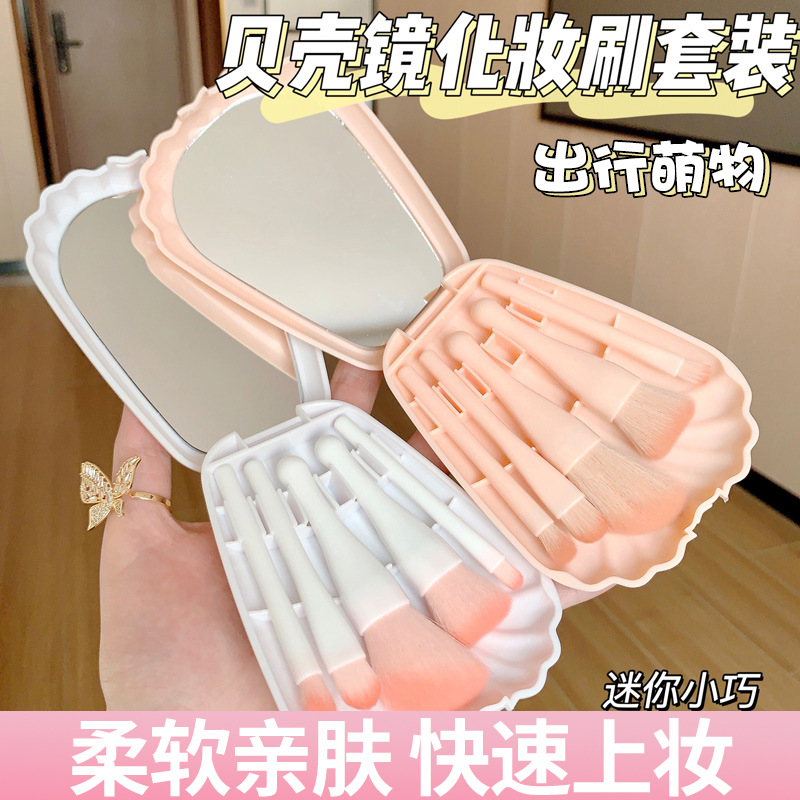 国境を越えた新製品5本の貝殻化粧ブラシセット鏡付き携帯型旅行金修容ブラシ美化粧ブラシツール