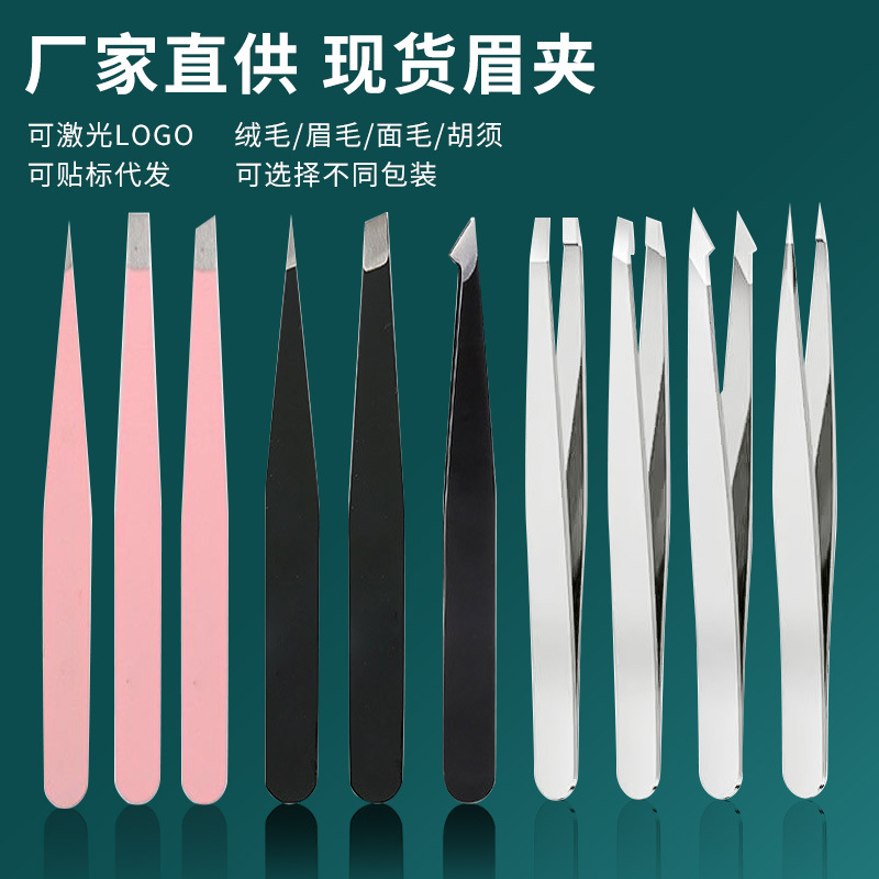 工場卸売りステンレス眉クリップ黒斜平口尖頭修眉ピンセット抜毛美化粧工具眉クリップ