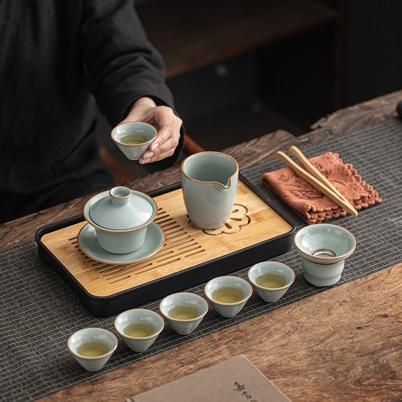 汝窯旅行茶器セット屋外ポータブルティーポット茶盤工夫茶器陶磁器カップ会社プレゼント