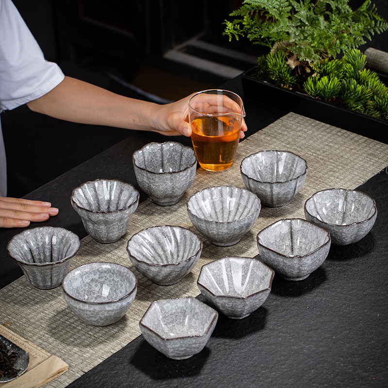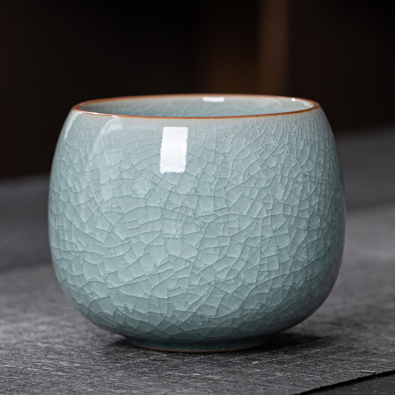 哥窯茶杯汝窯開片氷花釉品茗杯個人カップ主人杯陶磁器単杯工夫カップ家庭用