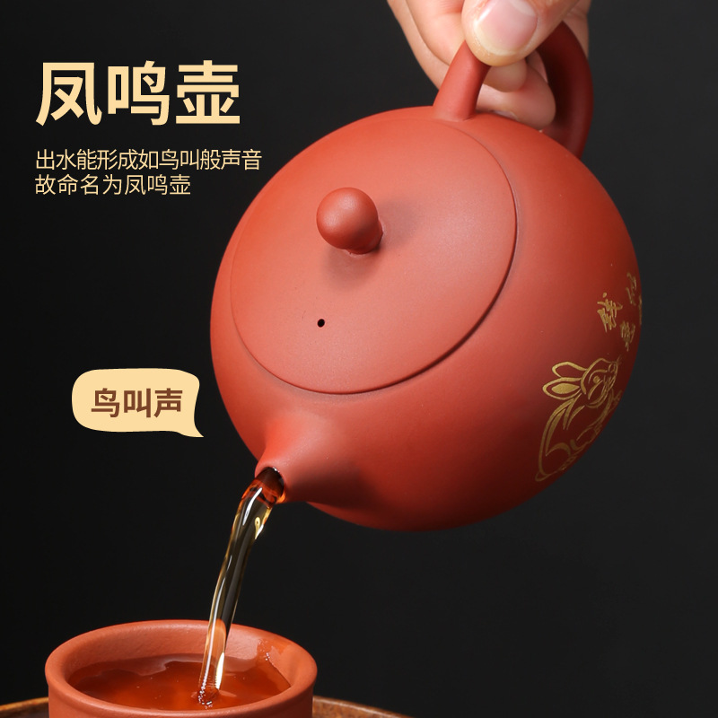 紫砂壺の大紅袍鳳鳴壺は古西施壺の半手作り原鉱朱泥家庭用ティーポットの鳥が泡ティーポットと呼ばれています。