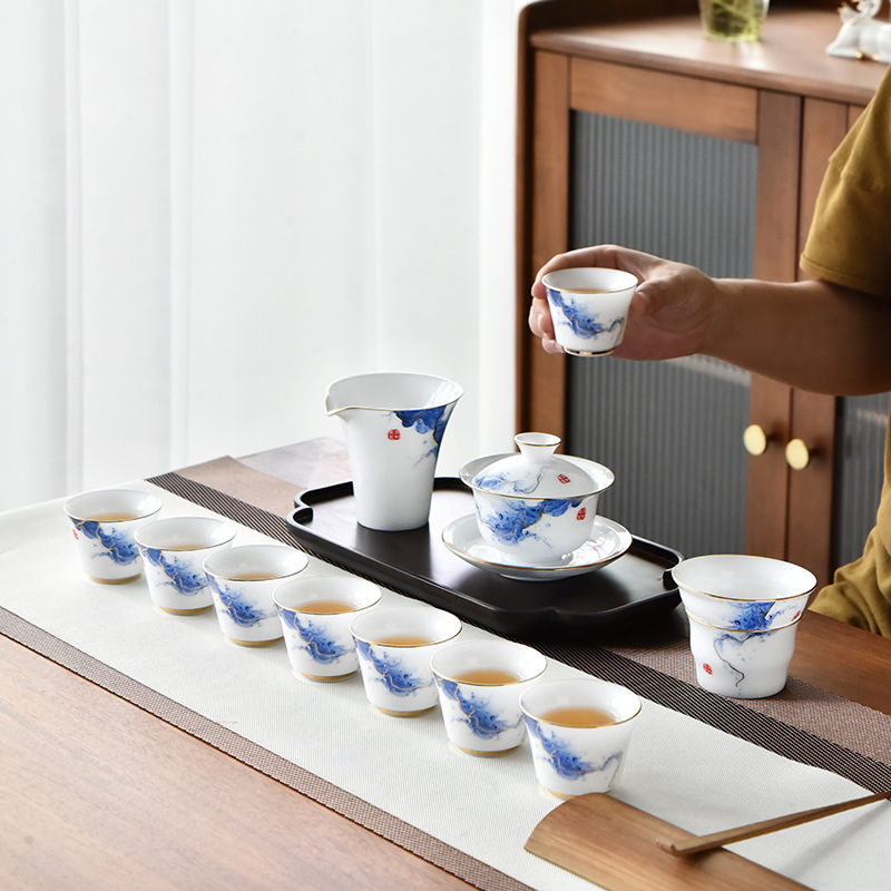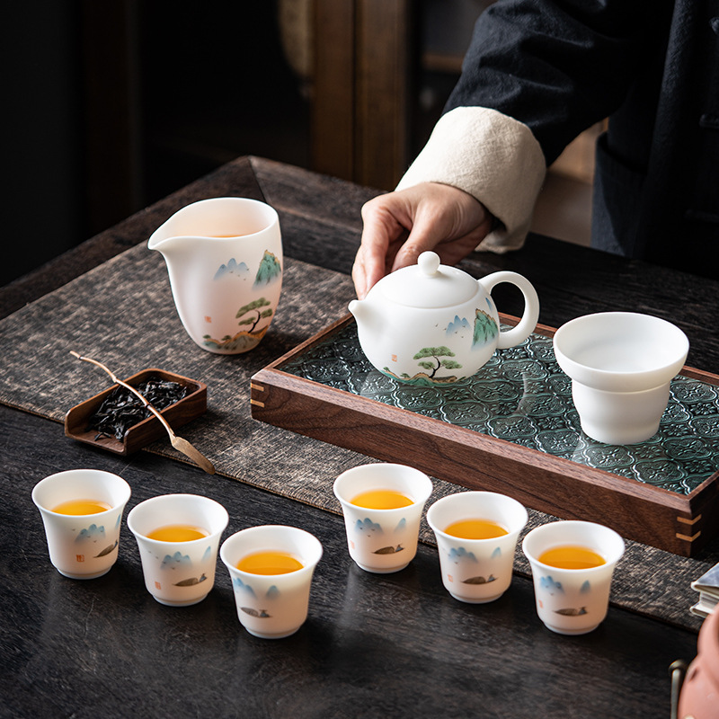 羊脂玉白磁素焼きカップ陶磁器工夫茶器セット純手描き玉磁器高級セットビジネスプレゼント