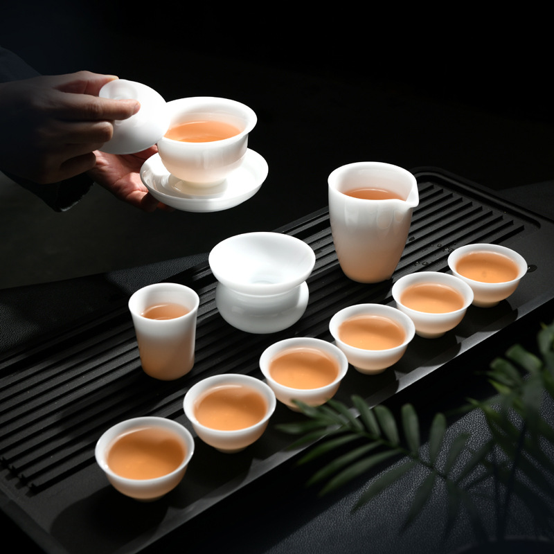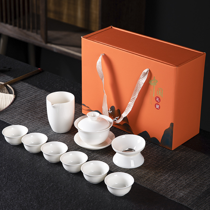 氷種羊脂玉セット純白徳化玉磁器セット家庭用工夫茶道具品茗茶杯高級ギフトボックス