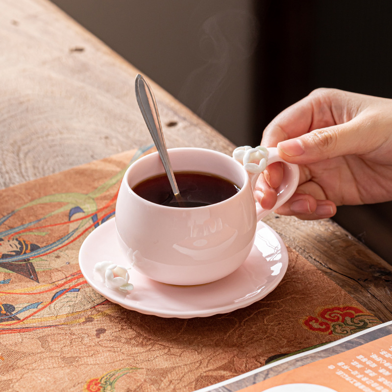 陶磁器のコーヒーカップのセットの喫茶店のアイデアのマグカップのつまみの花の女性の中国式のコーヒーのコップの贈り物の贈り物の箱