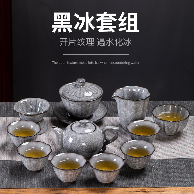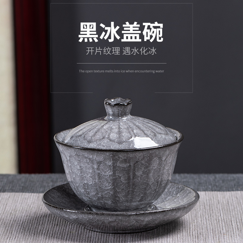 黒氷花ティーカップセットセラミック氷裂釉大サイズ三才蓋碗ティーポット工夫茶器ギフトボックス茶碗プレゼント