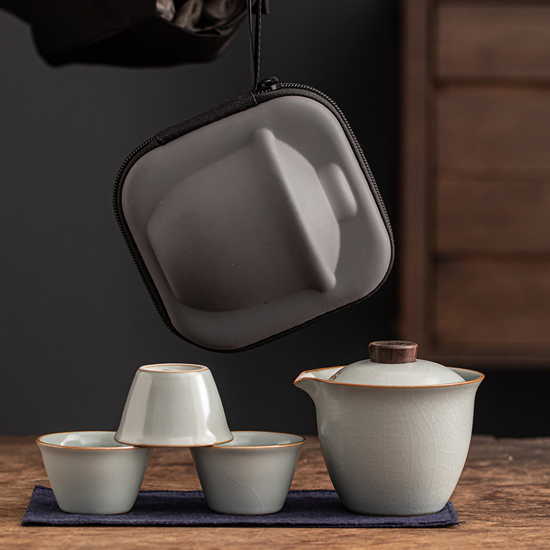 汝窯快客杯旅行茶器セット屋外携帯茶器車載工夫茶杯ティーポット家庭用ビジネス