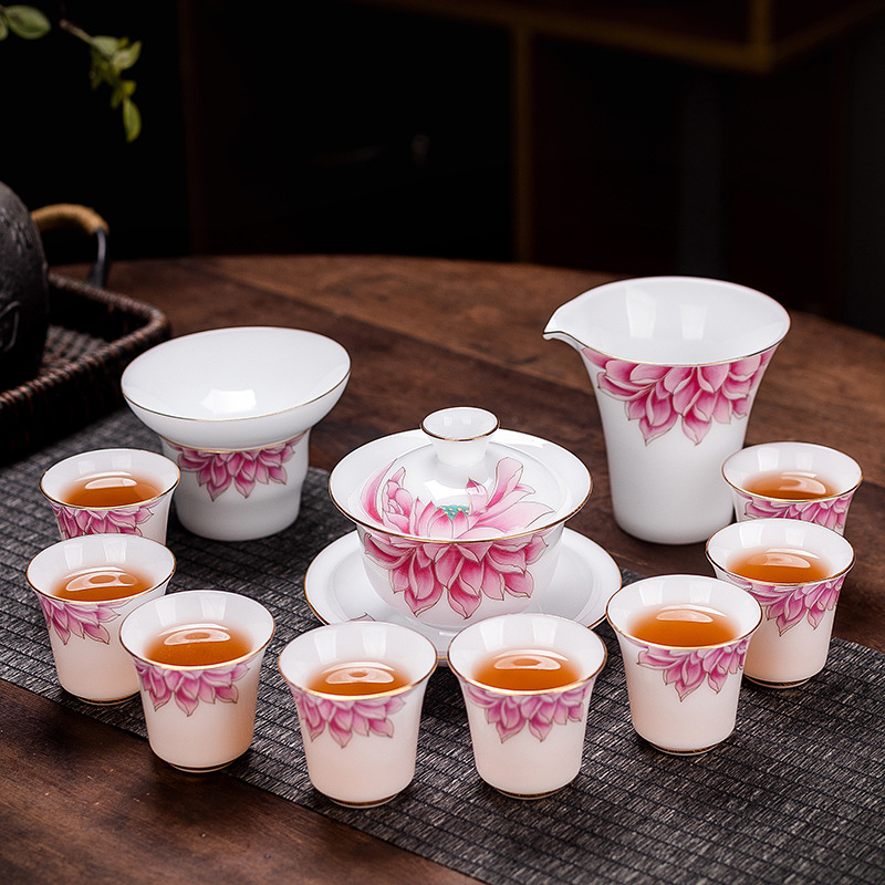 羊脂玉白磁工夫茶器セット蓋碗陶磁器プレゼントカップ茶器客間家庭用広告卸売り