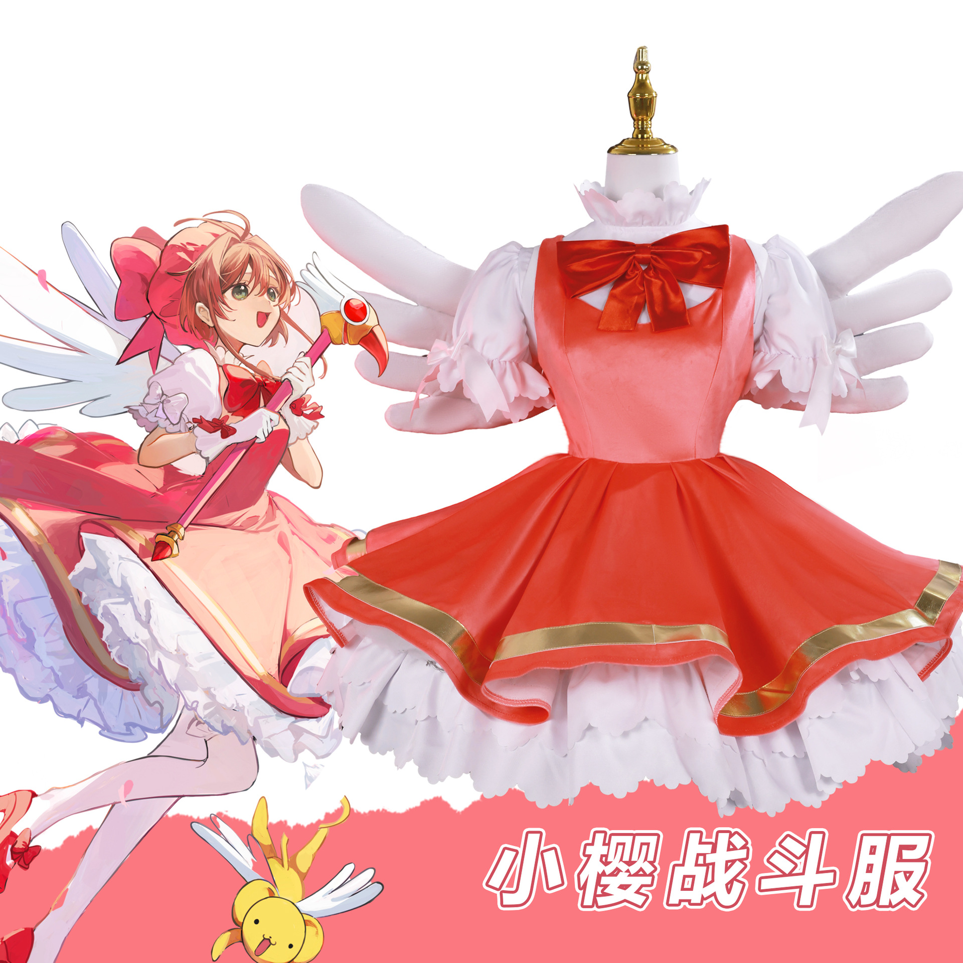 魔カード少女桜cos服小桜cos小桜紅白戦闘服フルセットcos二次元コスプレ