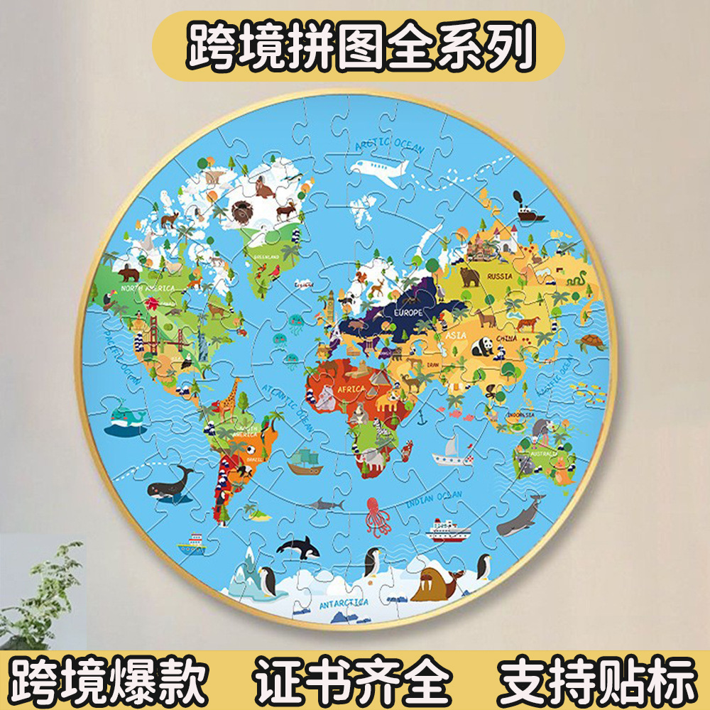 クロスボーダー発光ラウンド世界犬恐竜ブルーカード紙パズル子供のインタラクティブ誕生日ギフト知育玩具