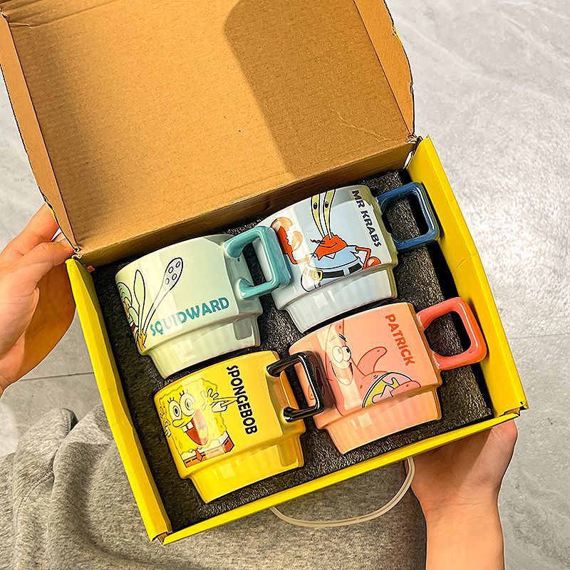 海绵宝宝陶瓷马克杯可爱情侣水杯套装派大星生日礼物家用喝水杯子