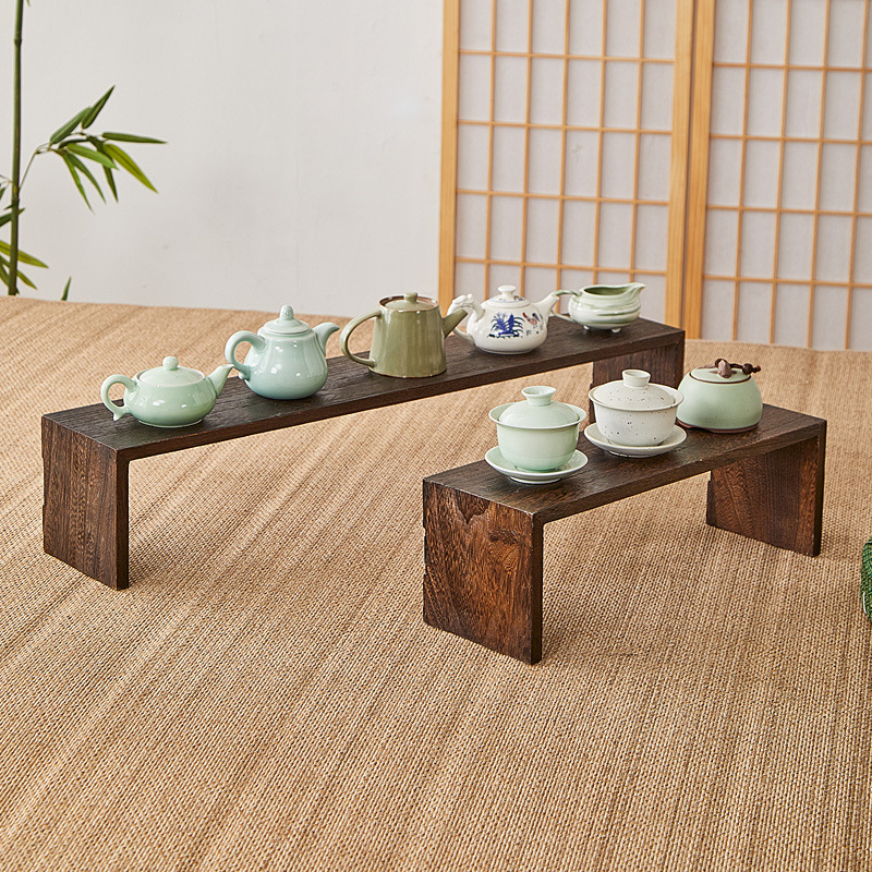 無垢材のテーブル小さなボーグラフ紫砂ポットティーセットティーカップ収納ラックリビングルームティールームデスクトップ収納ラックティートレイ