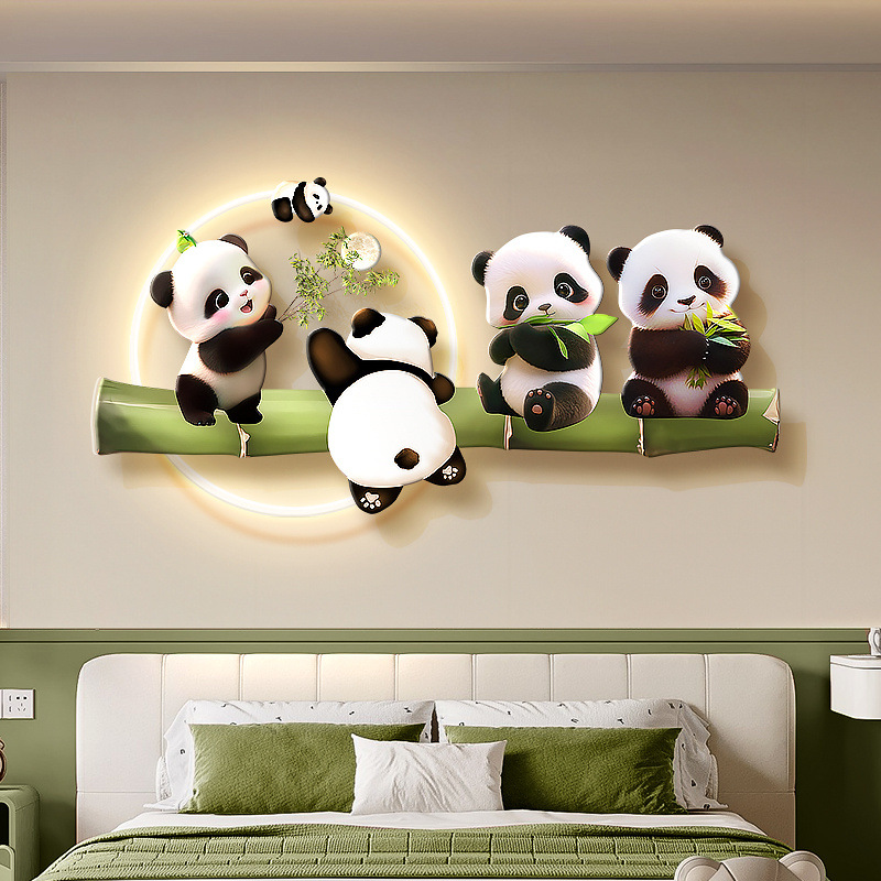 パンダ子供部屋装飾絵画クリームスタイル漫画寝室ベッドサイド壁画ライト男の子リビングルーム背景壁掛け絵画