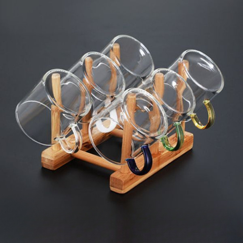 カラフルな高温耐性ガラスの小さなティーカップ6個パック、小さなハンドルカップ、耐熱カップ、ティーカップ、ティーカップ、カンフーティーセット
