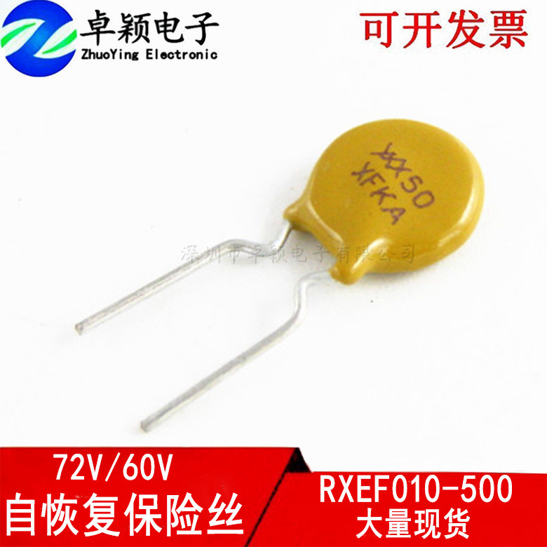 PPTC保護器72V/60V 0.5aパラメータx 72シルク印刷f.050 RXEF050直挿自己回復保険