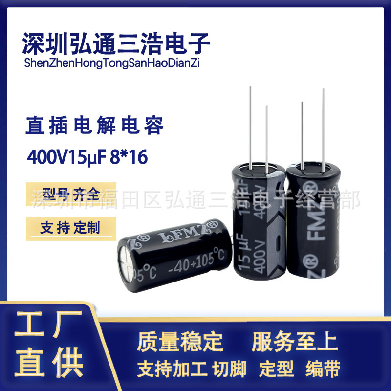 400V15UFメーカー直販アルミ電解コンデンサ15UF400V 8X16インライン電解コンデンサ8*16