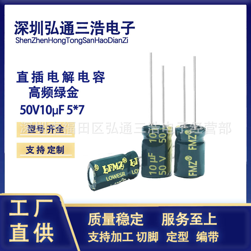 Lfm z 50v 10uf 5x7高周波低抵抗緑金新全シリーズインラインアルミ電解コンデンサー