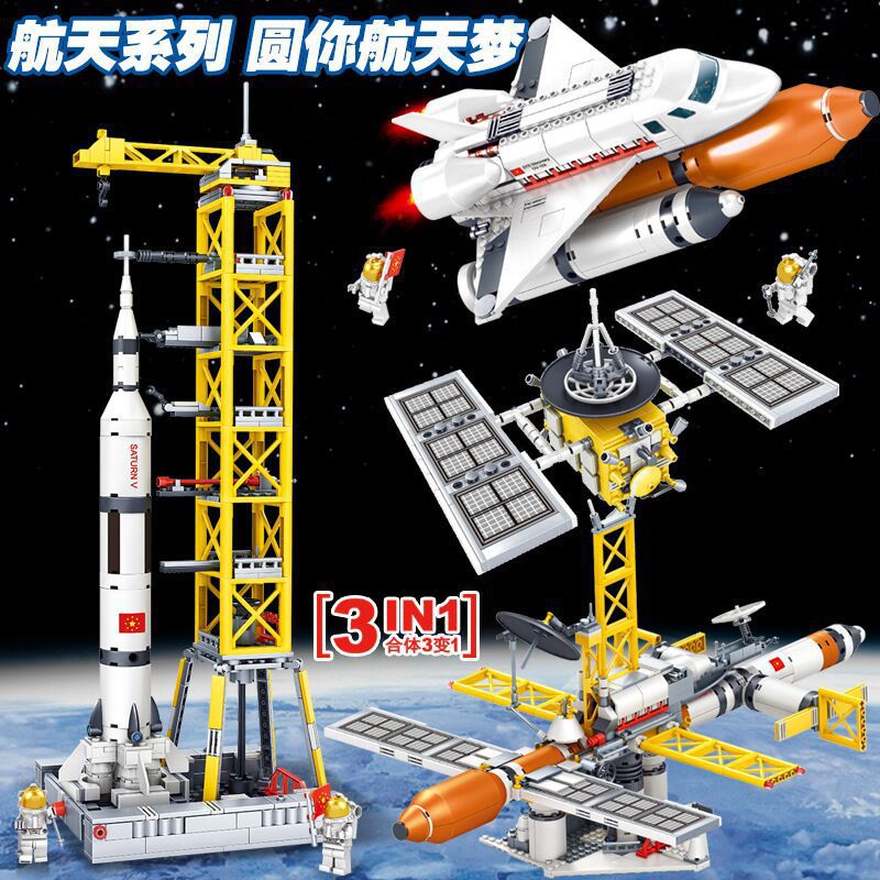 子供ロケット模型宇宙発射センターはレゴの小粒を合わせて積み木の男の子の知育玩具を組み立てることができます。