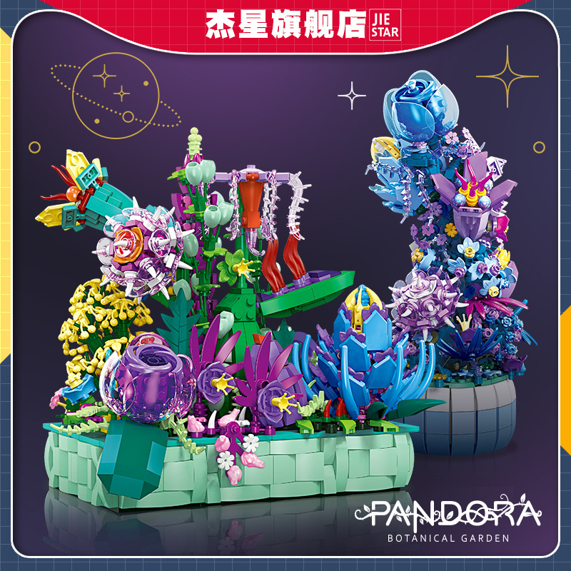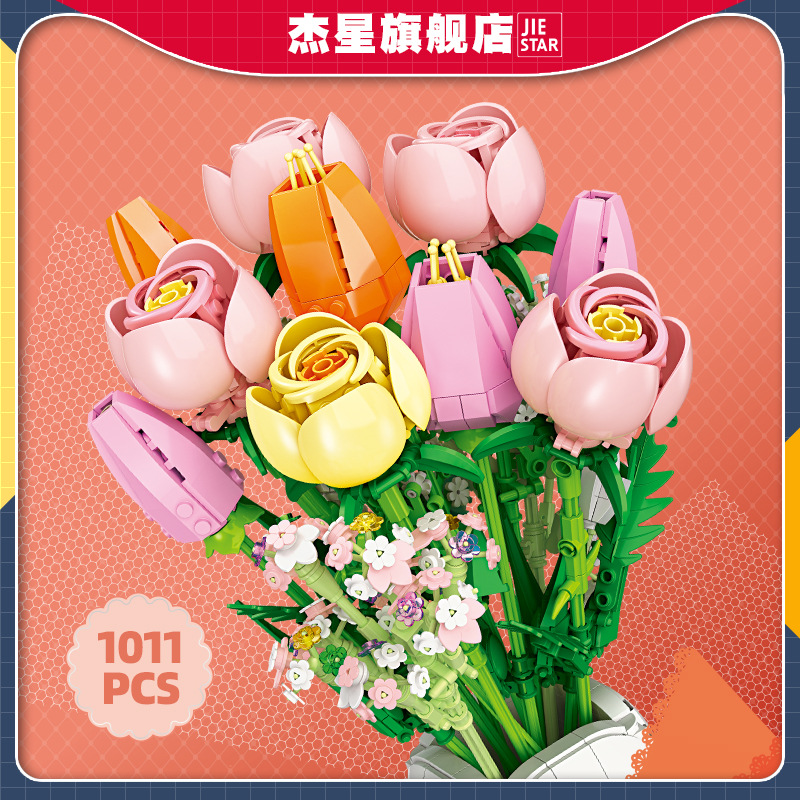 傑星JJ9065粉雪山花瓶互換レゴ積み木シミュレーション花束益智組み立て玩具置物