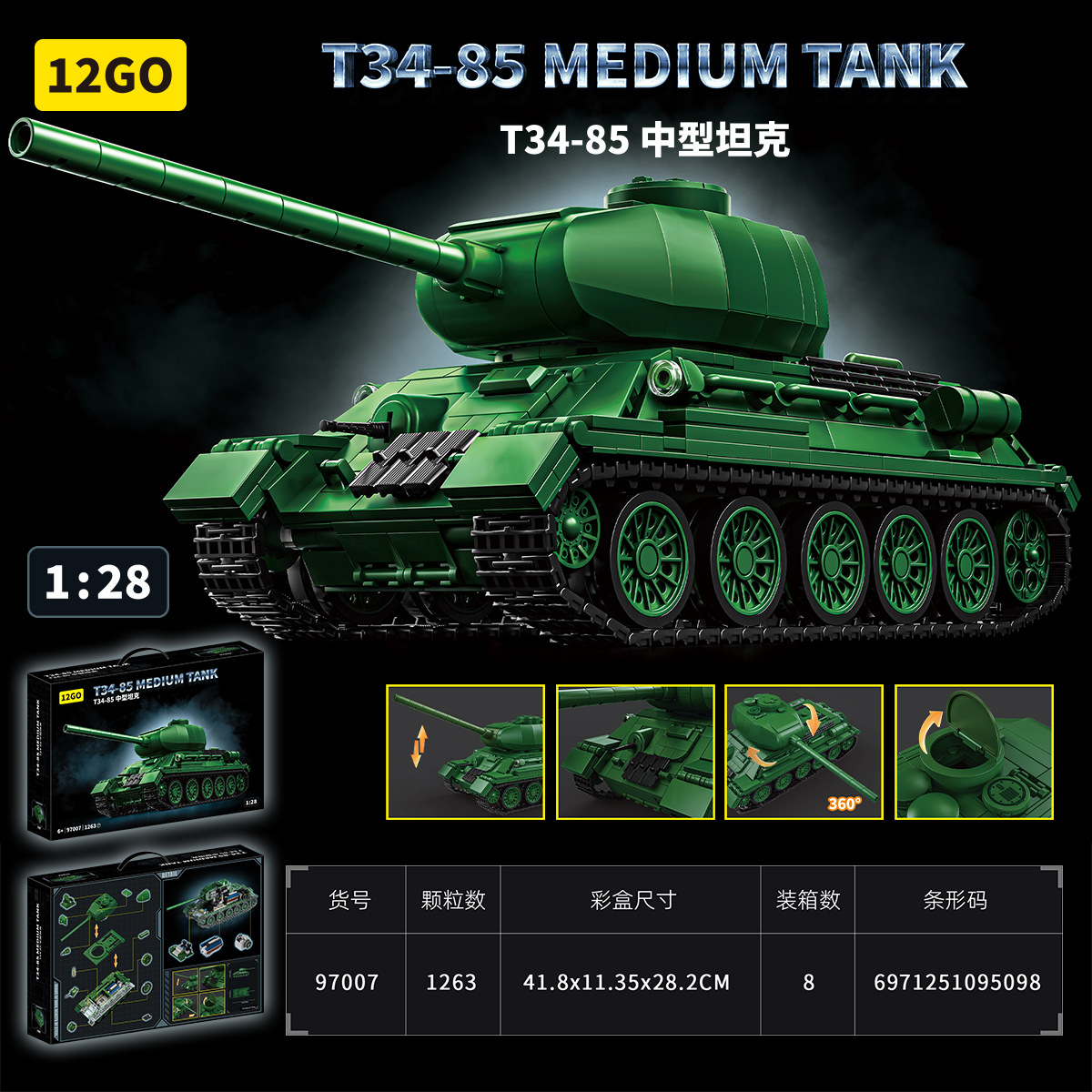 12GO 97005第二次世界大戦ソビエト戦車模型はレゴの積み木と互換性があります。