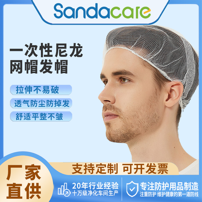 使い捨てナイロンヘアメッシュ不織布ブラックヘッドカバーメッシュ丸いキャップ工場食品美容ワークキャップ