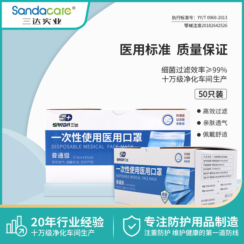 三達使い捨て医療用マスクカスタム色ロゴパターン三層防護平面マスク卸売りメーカー