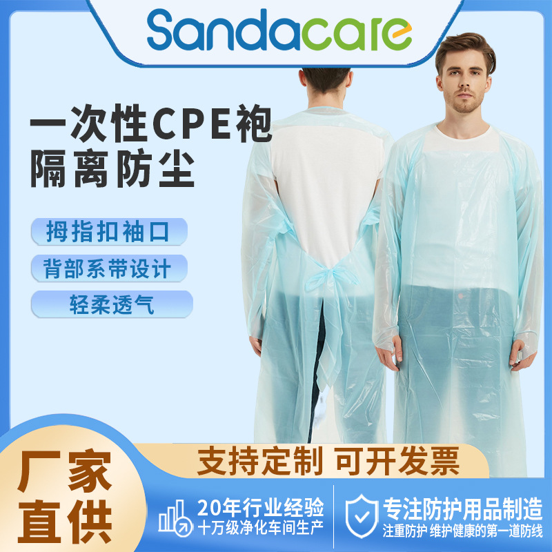 使い捨てCPEローブプラスチックエプロン反着式親指カフス防塵防水防護服作業服