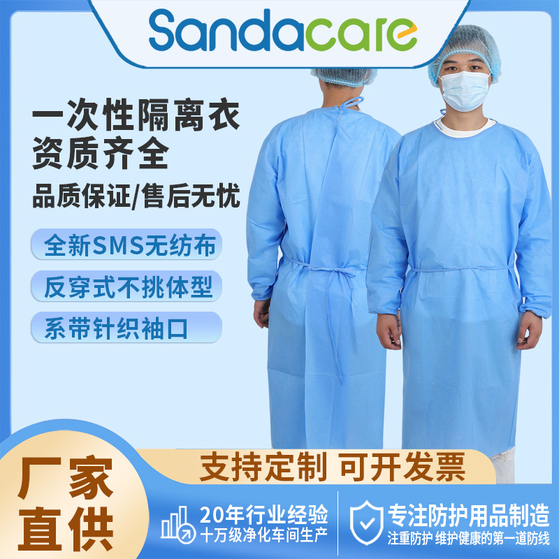 カスタム使い捨て隔離服不織布sms逆着式防水防塵耐引き裂き隔離服防護服卸売り