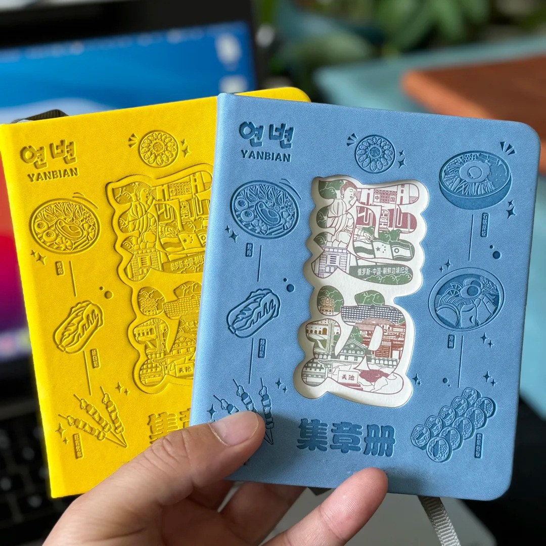 カスタマイズされた都市景勝パスポート、チェックインスタンプ、ハードカバーエンボス折りたたみブック、ストラップ付きスタンプブック