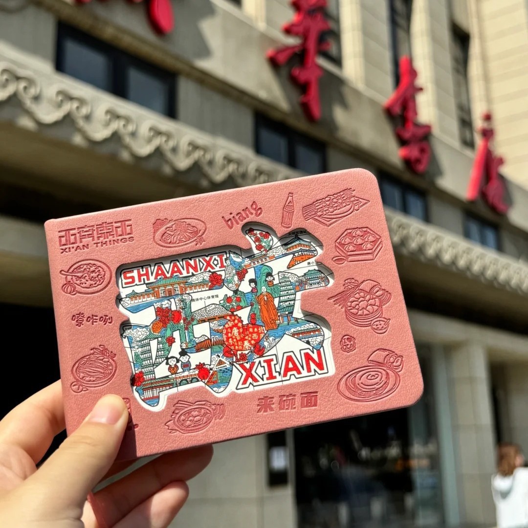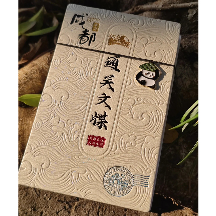 文創手帳の字は透かし彫りのノートA6都市の観光スポットのカードを押して捺印します。