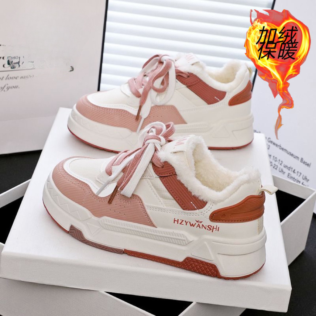 2024新しい厚い底にベルベットの靴春と秋に白い靴の女性カジュアルな板靴の女子学生の保温綿靴
