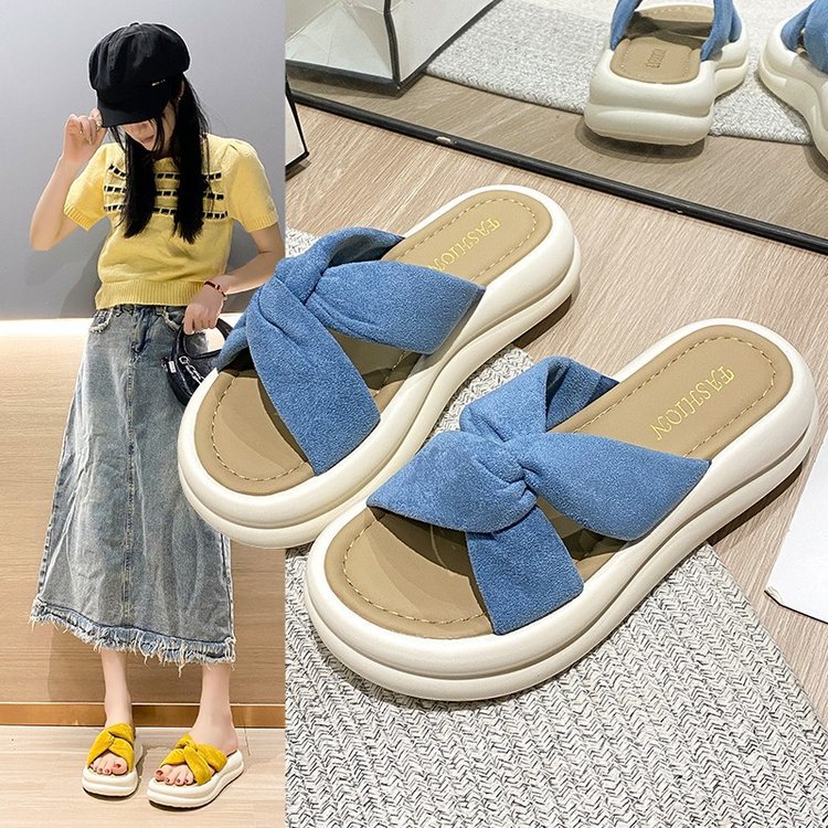厚底フェアリースタイルスリッパ女性のための 2025 夏の新ファッションビーズオープントゥアウターパンケーキスリッパ
