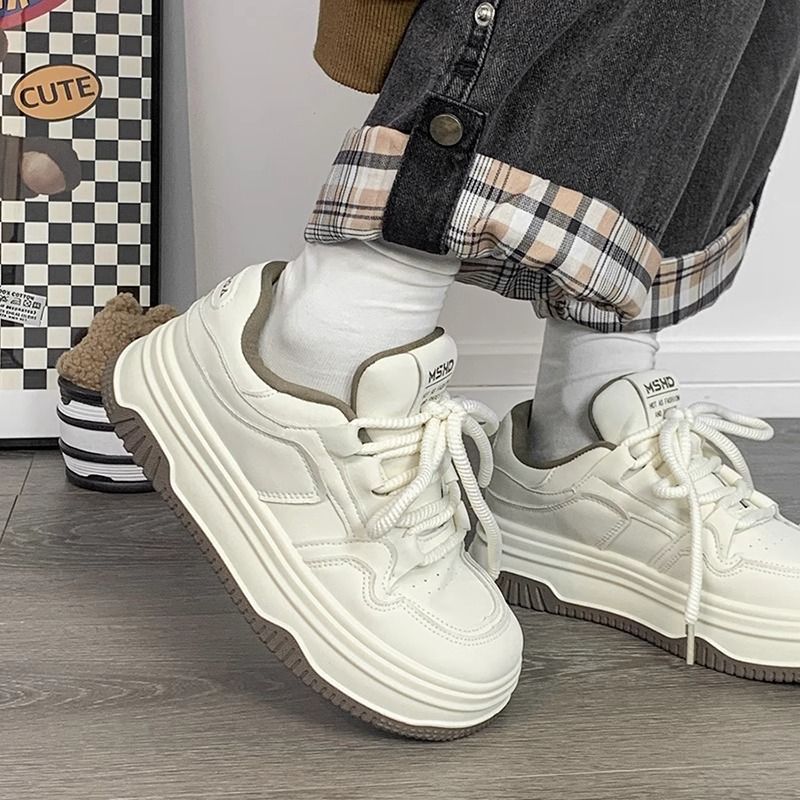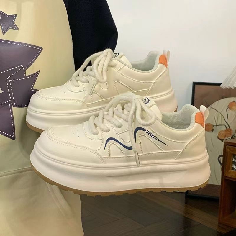 ins 韓国風白靴レディーストレンド 2025 夏新作厚底プラットフォームシューズ女子学生万能スニーカー a14