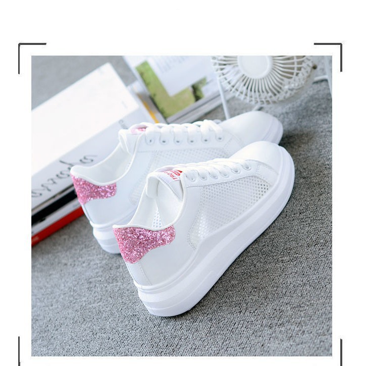 厚底夏通気性多用途白靴女性のための 2025 夏の新しいカジュアルメッシュカジュアルスニーカー