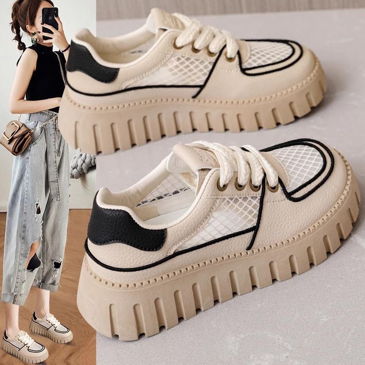 女性のための白い靴 2025 新作春厚底イントレンディな多用途ニッチ学生スポーツメッシュパネルシューズトレンディ