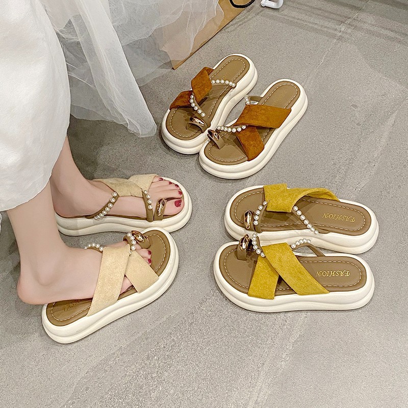 厚底 2025 新しい夏スタイルパールソフトベルト多用途スタイルファッショナブルなビーチウェア厚底快適なスリッパ