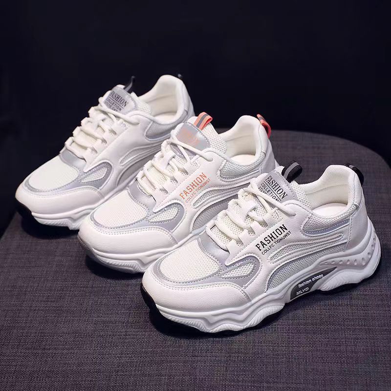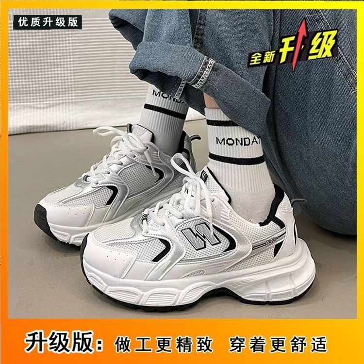 お父さんの靴の女性の2025春秋の新型の学生の韓国版はやせている運動靴の女性のカジュアルな靴の厚い底のinsの白い靴を現します。