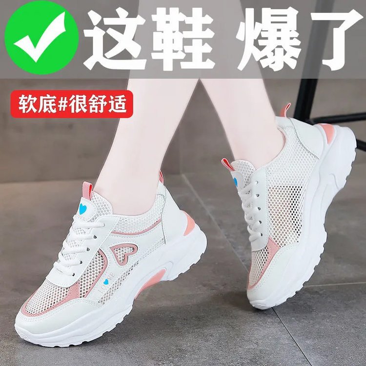 お父さんの靴の女性の2024春の夏の新型の百合のカジュアルな厚い底のinsの潮の薄いネットの通気性の運動の靴