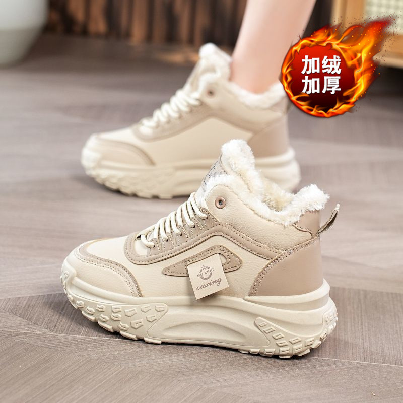 女性用靴 2025年冬新作 韓国版 万能プラスベルベット ホワイトシューズ レディース コットンシューズ ハイカット 厚底 スノーブーツ ショートチューブ