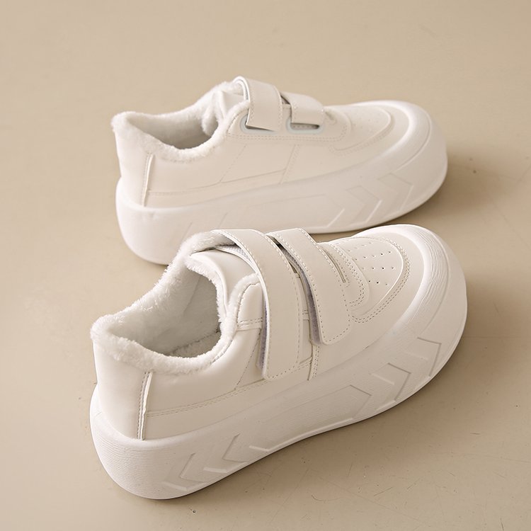 厚い底の白い靴の女性の冬の新型のベルベットの学生のキャンパスの風のファッションは大きい頭のマジックを合わせてパンの板の靴を貼ります。