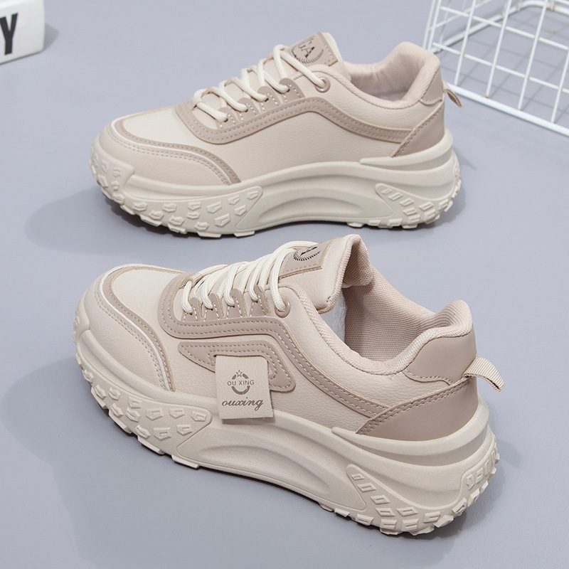 中背が高くなったスポーツシューズの女性は2023春秋ファッションの厚い底の白い靴がカジュアルで痩せている