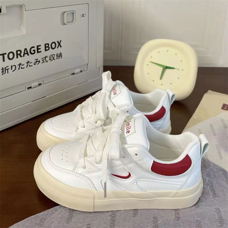 2023春夏新作レディースシューズpu皮面通気性スポーツ風カジュアルシューズ板靴学生白靴インスタロー